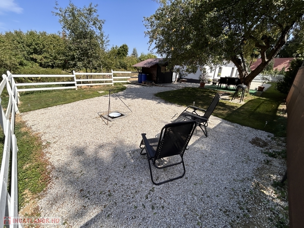 A 1600 m²-es telekből 400 m² körbekerített, tűzrakóhely és egy 12 m²-es hangulatos terasz áll rendelkezésre.