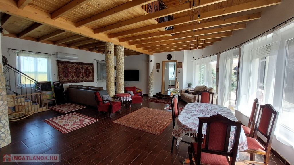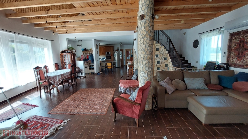 A 320 m²-es ház egy 864 m²-es, összközműves telken helyezkedik el. A fűtésről és melegvíz-ellátásról vegyes tüzelésű kazán, gázkazános cirkófűtés és elektromos bojler gondoskodik, a kellemes hőérzetet pedig három darab klímaberendezés biztosítja. A 14 kW-os napelemrendszernek köszönhetően az ingatlan szinte teljesen önfenntartó, ipari áram (3x32 A) is rendelkezésre áll.